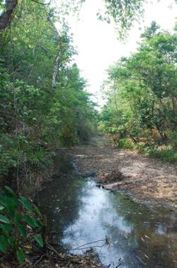 ทางเข้ากุดเม็ก บ้านคำบง อ.ศรีเมืองใหม่ จ.อุบลราชธานี ในปัจจุบัน