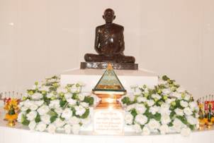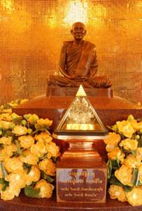 รูปเหมือนและอัฐิธาตุองค์หลวงปู่เสาร์ กนฺตสีโล ภายในเจดีย์