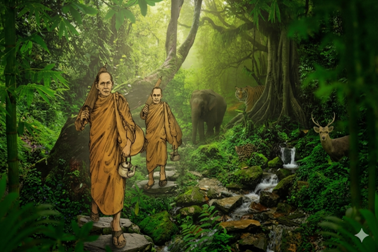 รูปจำลองเหตุการณ์ องค์หลวงปู่เสาร์ องค์หลวงปู่มั่น จาริกไปพร้อมกัน