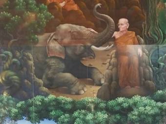 จิตกรรมหลวงปู่ขาว อนาลโย กับช้าง ณ พระบรมธาตุธรรมเจดีย์ วัดโพธิสมภรณ์ อ.เมือง จ.อุดรธานี (รูปโดย Admin)