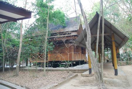 กุฏิจำลององค์หลวงปู่มั่น ภูริทตฺโต สร้างในบริเวณตำแหน่งที่ตั้งกุฏิเดิมที่ผุพังไป (รูปจาก โครงการท่องเที่ยวโดยชุมชนตามรอยองค์หลวงปู่มั่น ภูริทตฺโต)