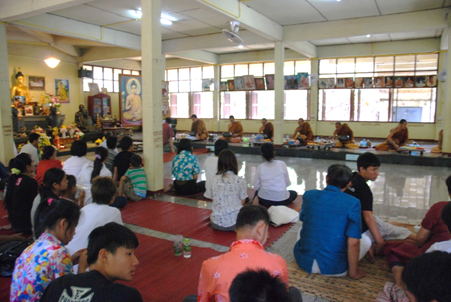 คณะศรัทธาญาติถวายภัตตาหาร ณ วัดป่าอาจารย์มั่น บ้านแม่กอย อ.พร้าว จ.เชียงใหม่ ในปัจจุบัน (รูปโดย Admin)