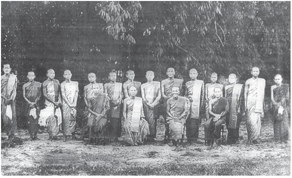 องค์นั่งกลางจับเข่า คือ สมเด็จพระมหาวีรวงศ์ (อ้วน ติสฺโส)