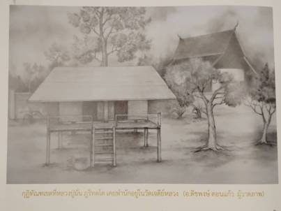 รูปวาด "กุฏิทัณตเขต" กุฏิที่องค์หลวงปู่มั่น ภูริทตฺโต เคยจำวัด