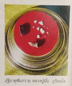 รูปอัฐิและฟันกรามองค์หลวงปู่มั่น ภูริทตฺโต จากหนังสือกองทัพธรรมพระกรรมฐาน ซึ่งเป็นปฐมเหตุแห่งการสืบค้น ปูชนียวัตถุนี้ ให้กลับมาเป็นสิ่งรำลึกบูชาถึงองค์พระบูรพาจารย์อีกครั้ง