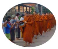 เวลา ๗.๓๐ น. พระภิกษุ-สามเณร ออกบิณฑบาตในวัด