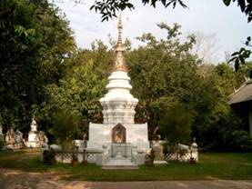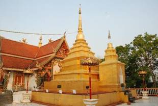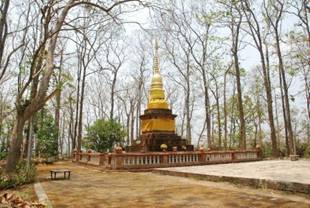 วัดพระธาตุดอยจอมแจ้ง อ.แม่สรวย จ.เชียงราย (ซ้าย) กล่าวกันว่าองค์หลวงปู่มั่น ได้มาผูกกลดอาศัยอยู่ที่ต้นสารภี