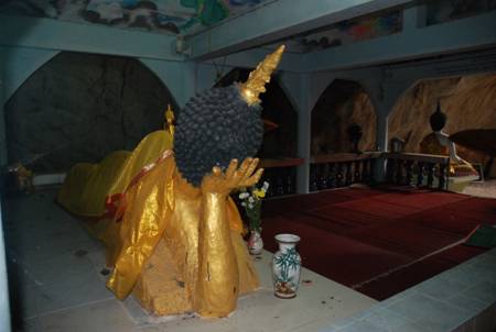 ในความรู้สึกส่วนลึก ท่านว่าราวกับจะพาพระหนุ่มสององค์นั้นออกจากโลกสมมุติทั้งสามภพ ไม่มีวันกลับมาสู่โลกใด ๆ อีกต่อไปเลย พอไปถึงภูเขาแล้ว ช้างพาท่านและพระหนุ่มสององค์เดินเข้าไปที่หน้าถ้ำแห่งหนึ่งซึ่งไม่สูงนัก เพียงเป็นเนินเชื่อมกันขึ้นไปหาถ้ำเท่านั้น เมื่อช้างใหญ่ทั้งสามเชือกเข้าไปถึงถ้ำแล้ว ช้างเชือกที่ท่านอาจารย์ขี่อยู่หันก้นเข้าไปในหน้าถ้ำ หันหน้าออกมา แล้วถอยก้นเข้าไปจรดผนังถ้ำ ส่วนช้างสองเชือกของพระหนุ่มสององค์ต่างเดินเข้าไปยืนเคียงข้างช้างท่านข้างละเชือกอย่างใกล้ชิด หันหน้าเข้าไปในถ้ำ ส่วนช้างท่านอาจารย์ยืนหันหน้าออกมาหน้าถ้ำ