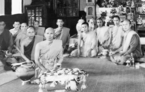 คณะพระเถรานุเถระที่เริ่มต้นวัดป่าสาลวัน ที่ทราบนาม ได้แก่ พระอาจารย์สิงห์ ขนฺตฺยาคโม หลวงปู่อ่อน ญาณสิริ พระอาจารย์กงมา จิรปุญฺโญ พระอาจารย์ฝั้น อาจาโร และพระอริยเวที (เขียน ฐิตสีโล) ในการอุปสมบท นายวัน คมนามูล ณ วัดสุทธจินดา อ.เมือง จ.นครราชสีมา (รูปโดย ดร.นระ คมนามูล)