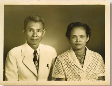นายวัน - นางทองสุก คมนามูล ผู้ขออนุญาตองค์หลวงปู่มั่น ถ่ายรูปไว้ที่ จ.นครราชสีมา และได้บันทึกไว้อย่างละเอียด (รูปโดย ดร.นระ คมนามูล)
