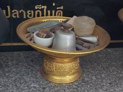 อัฐบริขารเก่าที่จัดแสดงใน วิหารองค์หลวงปู่มั่น ภูริทตฺโต และหลวงปู่ภูมี ฐิตธมฺโม ณ วัดป่าโนนนิเวศน์ อ.เมือง จ.อุดรธานี (รูปโดย Admin)