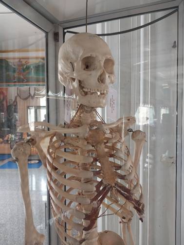 โครงกระดูกสำหรับพิจารณากายคตาสติ บนศาลาการเปรียญ วัดป่าโนนนิเวศน์ อ.เมือง จ.อุดรธานี (รูปโดย Admin)