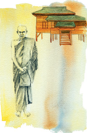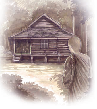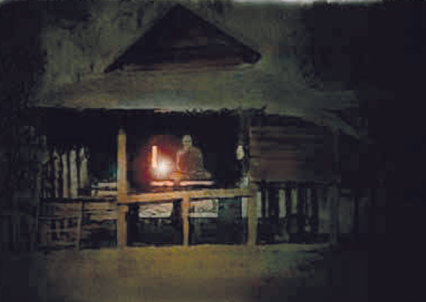 รูปจำลองเหตุการณ์ขณะหลวงตามหาบัว ได้เข้าไปที่เสนาสนะบ้านโคก