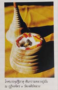 รูปอัฐิและฟันกรามองค์หลวงปู่มั่น ภูริทตฺโต จากหนังสือกองทัพธรรมพระกรรมฐาน ซึ่งเป็นปฐมเหตุแห่งการสืบค้น ปูชนียวัตถุนี้ ให้กลับมาเป็นสิ่งรำลึกบูชาถึงองค์พระบูรพาจารย์อีกครั้ง