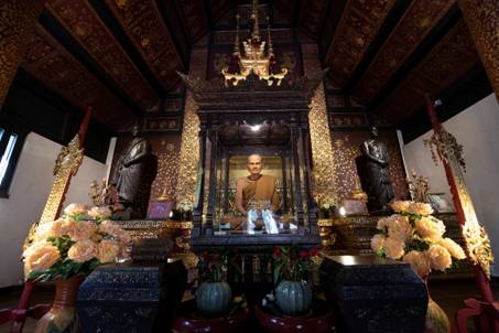 ภายในกุฏิจงจิตร สถานที่เก็บอัฐิธาตุ องค์หลวงปู่มั่น (รูปจาก จารึกไว้ในล้านนา)