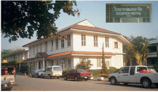 โรงพยาบาลแมคคอร์มิค จ.เชียงใหม่ สถานที่รักษาอาพาธในเบื้องต้น ซึ่งนายแพทย์แผนปัจจุบันวิเคราะห์การอาพาธขององค์หลวงปู่มั่นครั้งนี้ ว่าสุดกำลังในการรักษา แต่องค์หลวงปู่มั่น มิได้หวั่นไหว จะรักษาอาพาธด้วย "ธรรมโอสถ" โดยการบำเพ็ญภาวนา ที่ป่าเปอะ (รูปจาก กุสลมหาเถรานุสรณ์ เล่ม 1 และ หลวงปู่เจี๊ยะ จุนฺโท ผู้เป็นดั่งผ้าขี้ริ้วห่อทอง) |